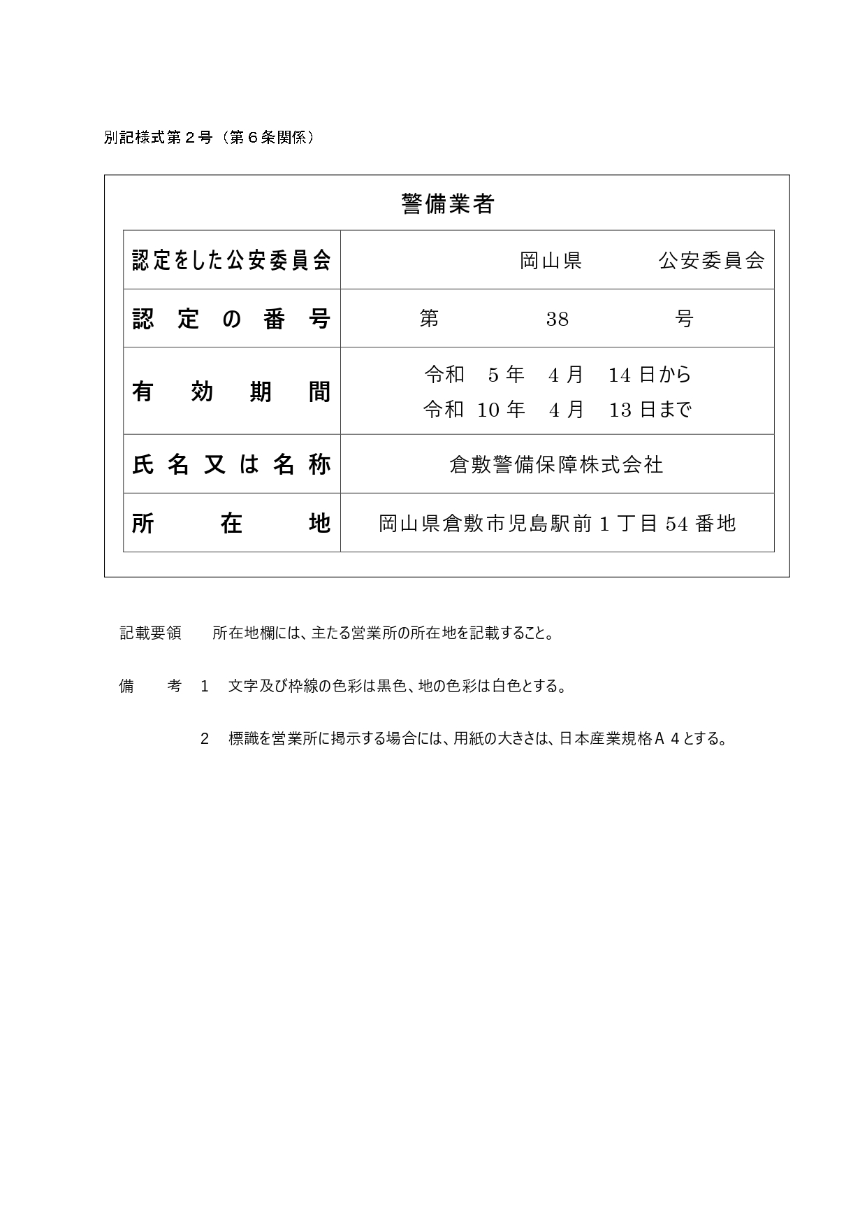 令和6年4月1日から警備業法の一部改正により認定証の掲示義務から標識の掲示義務に変わりました。